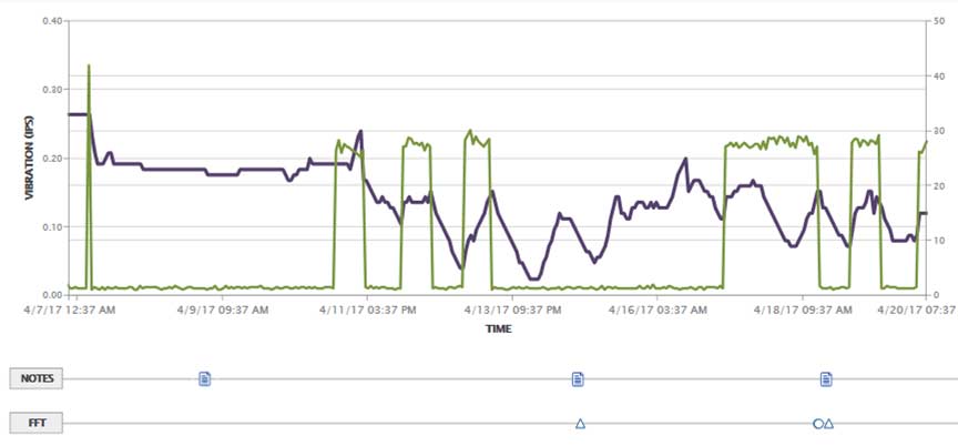 The i-ALERT sensor was designed to accurately measure vibration in all three axis and can be compared to the some of the most advanced vibration analysis tools in the market. Vibration diagnostics are available to anyone who can use a smart phone or tablet.